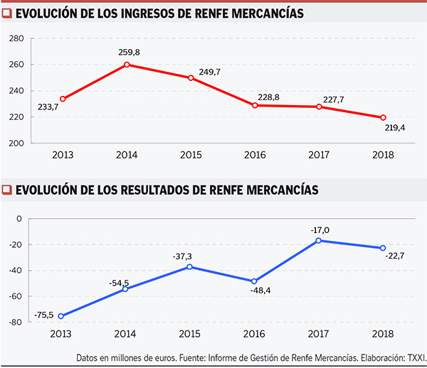 Por el contrario, la filial de mercancías de Renfe, que había logrado cambiar la tendencia en sus resultados al final del primer año del plan, recortando sus pérdidas hasta los 16,98 millones de euros y equilibrando su Ebitda hasta los -0,95 millones de euros, volvió a sucumbir con estrépito el pasado año.