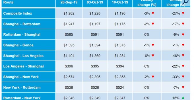 11/10/2019 AEUTRANSMER El índice Mundial de Contenedores elaborado por la consultora Drewry, que evalúa las tasas de carga de contenedores en las ocho rutas principales hacia y desde Estados Unidos,…