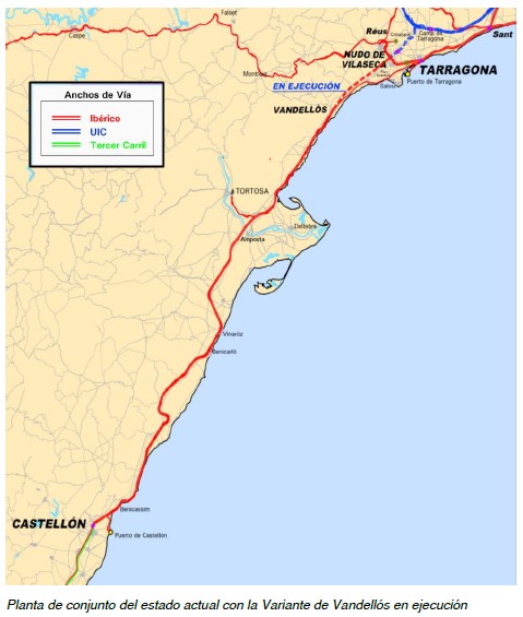 El Ministerio de Fomento ha publicado el estudio informativo para la implementación del ancho estándar en el tramo Castellón-Tarragona del Corredor Mediterráneo, en el de forma indirecta, pero contundente se da la puntilla al ancho ibérico dentro del Corredor Mediterráneo. Con lenguaje técnico desecha la solución del tercer carril que tanta publicidad obtuvo. Da problemas continuos a los trenes de pasajeros y sobre todo a cercanías.