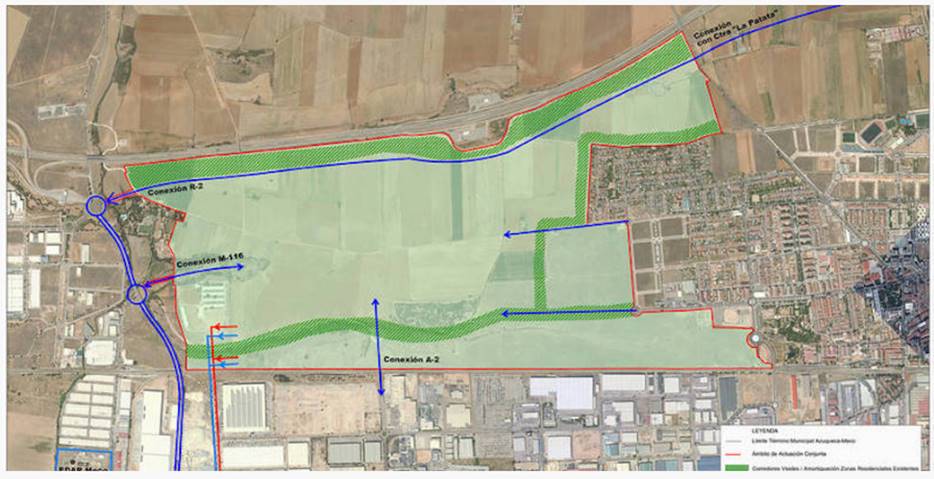 La actuación se desarrollará sobre una superficie de 356 hectáreas, de las que 97 de ellas se encuentran en el término de Azuqueca, mientras que el resto está en Meco, y alcanzará una inversión total, aportada por inversores y promotores privados, que superará los 1.000 millones de euros.