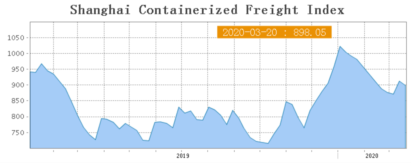 El Shanghái Containerized Freight Index (SCFI) marca esta semana un descenso del 1,5 %, lo que coloca este índice en 898,05 $/TEU, frente a los 911,85 $/TEU registrados la semana anterior.