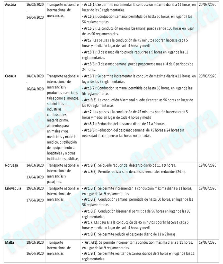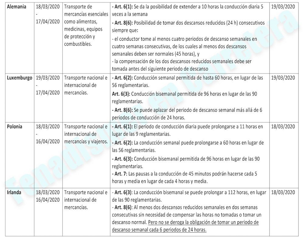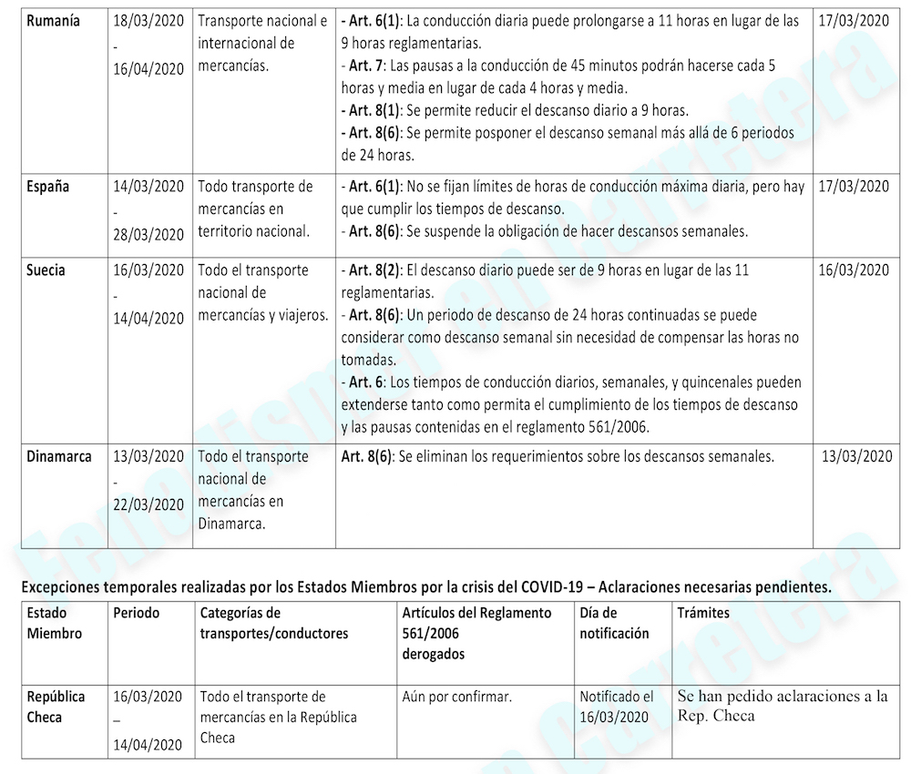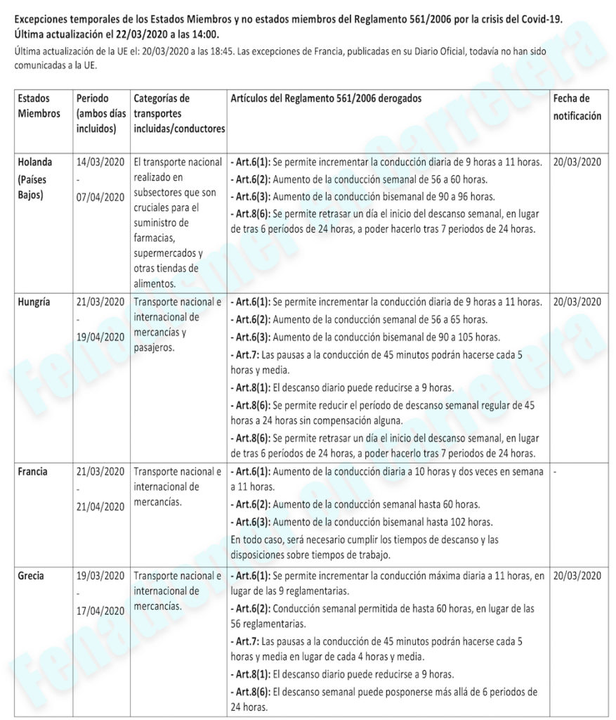 Actualizado a las 21:30h. del domingo 22 de marzo. Os actualizamos la información relativa a las exenciones a los tiempos de conducción y descanso en Europa. Se van sumando más países con exenciones a los tiempos de conducción y descanso.