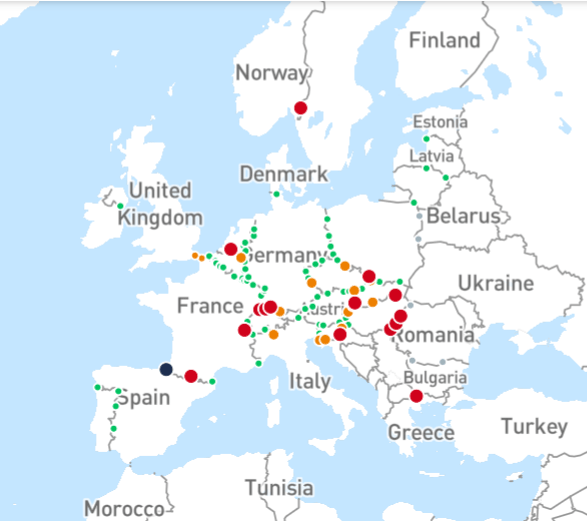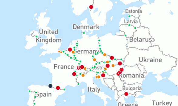 La DG de Transporte Terrestre nos facilita el enlace a un mapa actualizado con los tiempos estimados de demora para camiones en los pasos fronterizos. Da una idea muy clara de dónde están los problemas principales para los pasos de mercancías.