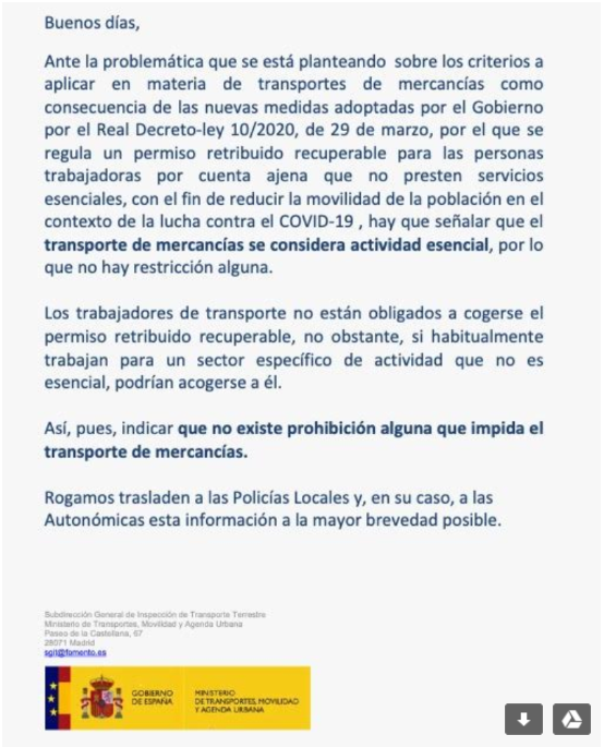 Los ministerios de Transportes e Industria, cada uno en el ámbito de sus competencias, vuelven a aclarar la situación en la que queda el transporte de mercancías durante el segundo periodo del estado de alarma.