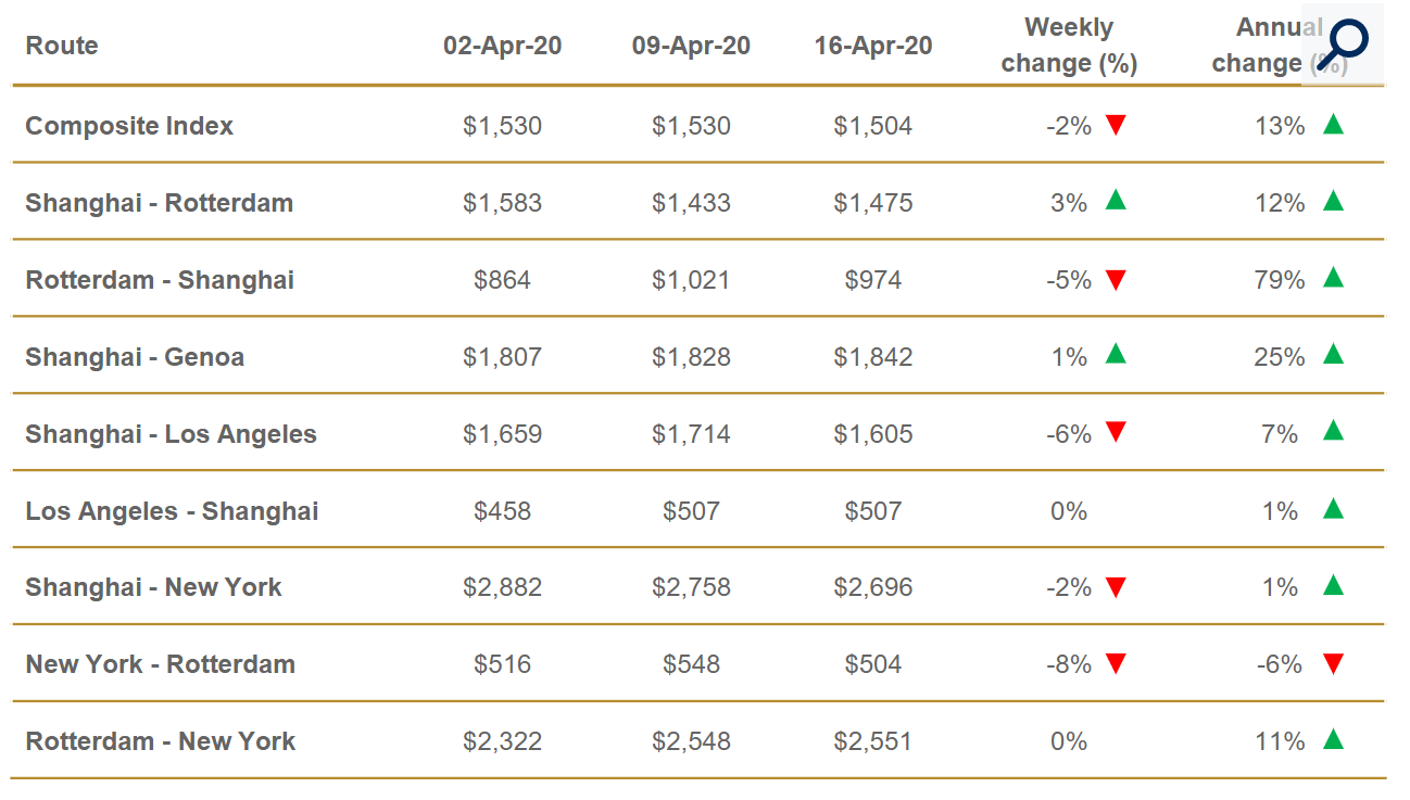 El índice Mundial de Contenedores (WCI) elaborado por la consultora Drewry, que evalúa las tasas de carga de contenedores en las ocho rutas principales hacia y desde Estados Unidos, Europa y Asia, ha descendido esta semana un 1,7 %, con respecto a la semana anterior, alcanzando los 1.627 dólares, 247 dólares más por contenedor de 40 pies que la media de los últimos cinco años establecida en 1.380 dólares. En comparación con el mismo período de 2019, el flete se incrementa un, 13.1%.