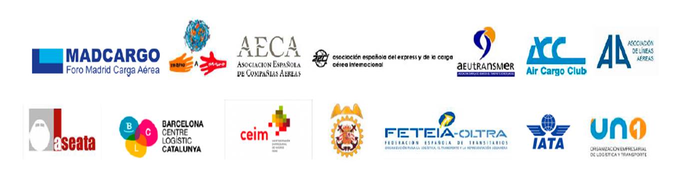 Las 13 organizaciones de la industria de la carga aérea española que impulsan y respaldan en su lanzamiento la campaña “Carga Aérea Ayuda Covid-19” en colaboración con la ONG Mano a Mano son: Foro MADCargo, Air Cargo Club, AECA (Asociación Española de Compañías Aéreas), AECI (Asociación Española del Express y de la Carga Aérea Internacional), Aeutransmer (Asociación Española de Usuarios del Transporte de Mercancías), ALA (Asociación de Líneas Aéreas), Aseata (Asociación de Empresas de Servicios de Asistencia en Tierra en Aeropuertos), BCL (Barcelona-Catalunya Centre Logistic), CEIM (Confederación Empresarial Independiente de Madrid), Consejo General de Agentes de Aduanas de España, FETEIA-OLTRA (Federación Española de Transitarios, Organización para la Logística el Transporte y la Representación Aduanera), IATA (Asociación Internacional de Transporte Aéreo) y UNO (Organización Empresarial de Logística y Transporte).