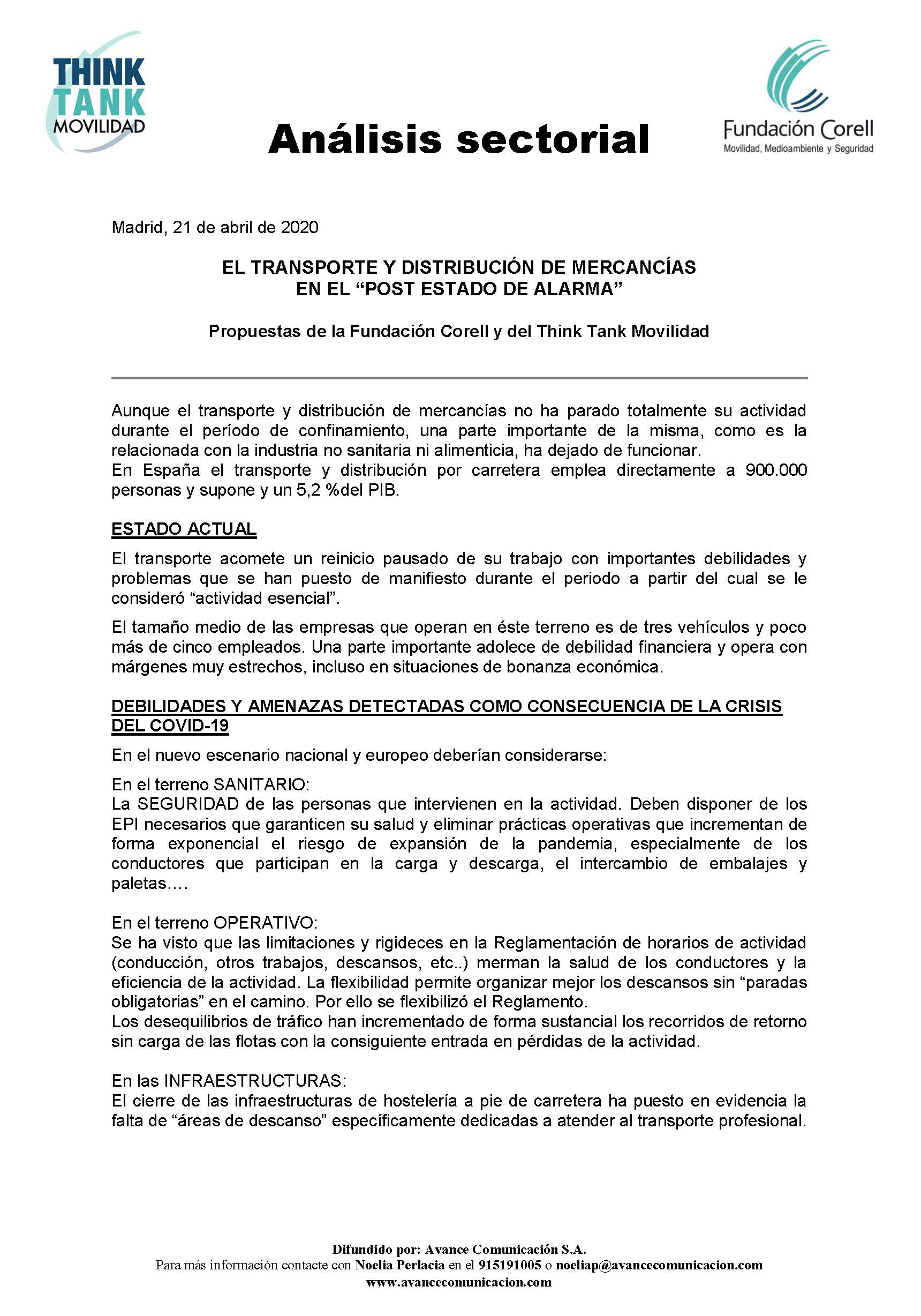 La Fundación Corell y el Think Tank Movilidad, hacen un conjunto de peticiones a la administración para una reactivación de la actividad del transporte que minimice los efectos negativos de la crisis. Entre estas demandas se encuentran las siguientes: