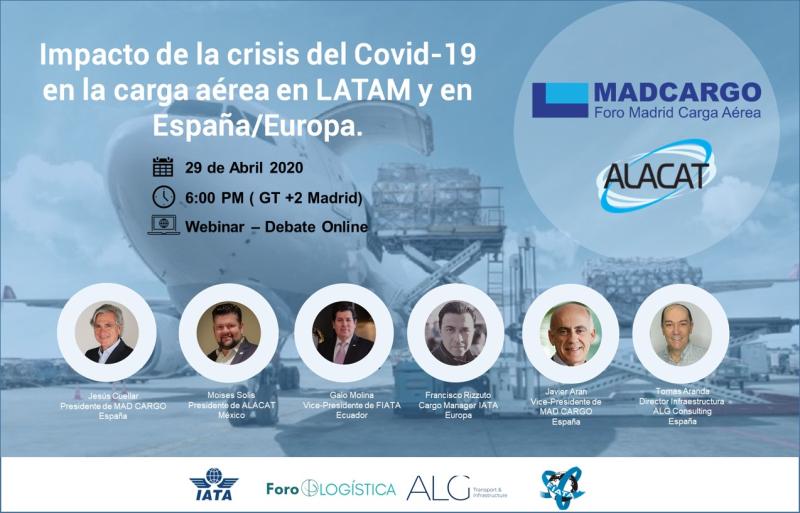 El próximo 29 abril 2020 a las 18,00 h, Foro MADCargo en alianza con ALACAT MUNDO organiza una mesa redonda para tratar el Impacto de la crisis del Covid-19 en la carga aérea en Latinoamérica, España y Europa.