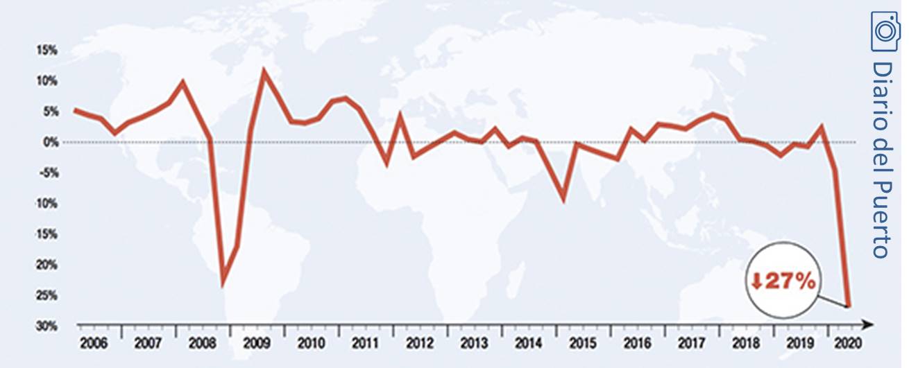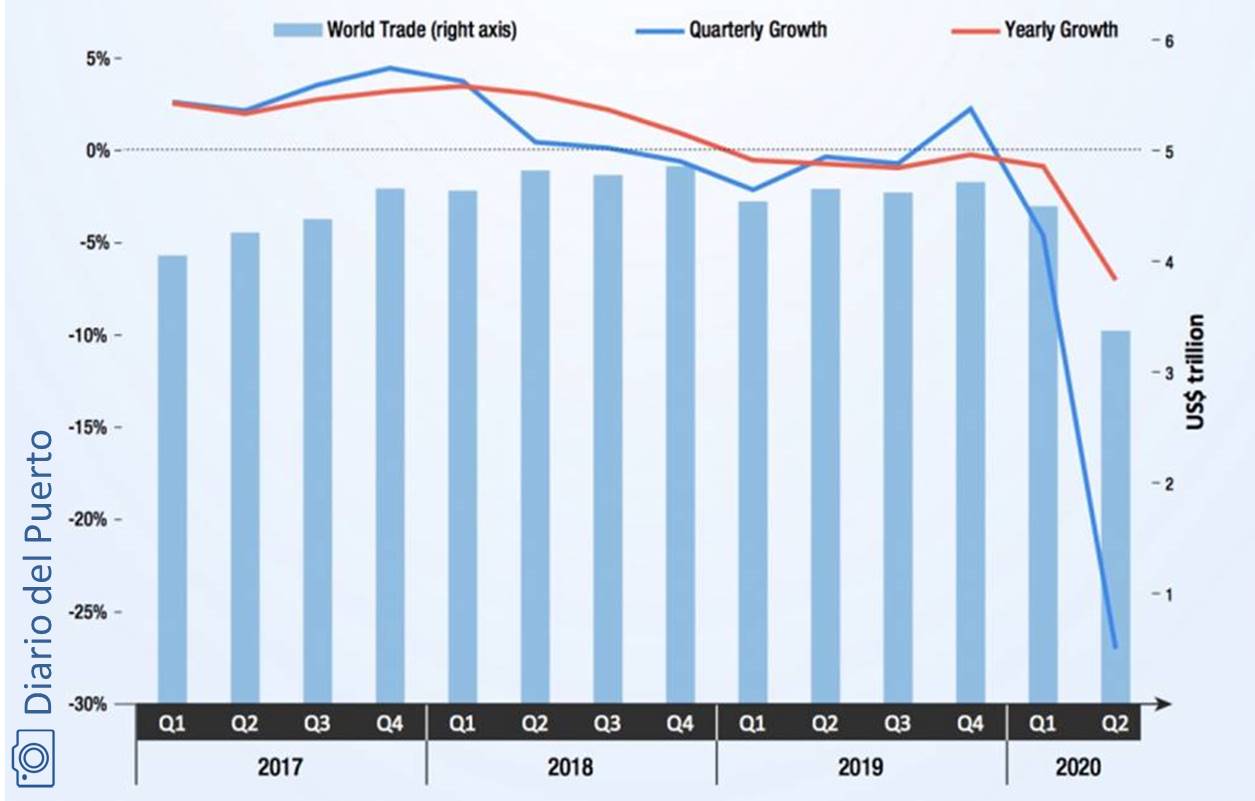 Los últimos datos de la UNCTAD (Conferencia de las Naciones Unidas sobre Desarrollo y Comercio) muestran que el comercio global disminuyó un 5% en el primer trimestre y apuntan a una caída del 27% en el segundo, situando su retracción anual en 2020 en un 20%.