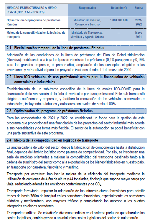 La modificación en las masas y dimensiones constituye una medida sin coste para el ejecutivo que, aunque se ha incorporado en el primero de los grandes planes de reactivación de la economía, impactará, a su vez, en la práctica totalidad de los sectores de la industria y la gran distribución, actuando como como palanca de competitividad de las empresas cargadoras, generando riqueza entre todos los intervinientes en el flujo logístico, y contribuyendo a la recuperación económica y la regeneración del empleo.