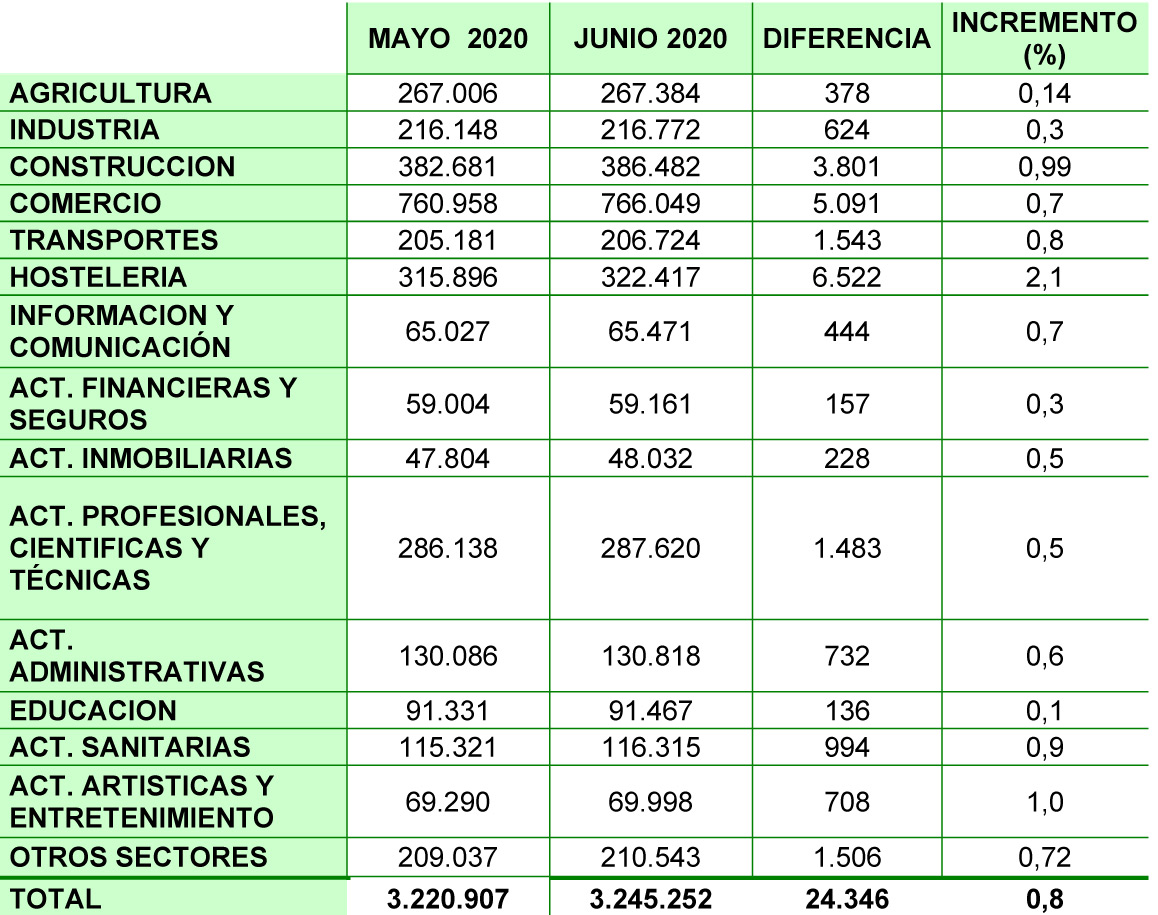 En junio, la afiliación de autónomos según los datos ofrecidos por el Ministerio de Inclusión, Seguridad Social y Migraciones, se incrementó en 24.346 autónomos. Un incremento mensual del 0,8% en España que fija el número de afiliados al RETA en 3.245.252 personas.