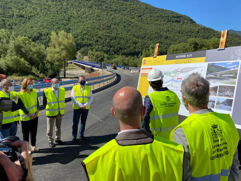 Previamente a su visita a la estación de Canfranc, Ábalos ha visitado las obras del nuevo ramal de conexión de la N-240 y la autovía A-21 a la altura de Ascara, y ha anunciado que entrará en servicio el próximo viernes día 10. También ha informado de que ese mismo viernes pondremos en servicio la glorieta de Aurín, incluida en las obras de la variante de Sabiñánigo que iniciamos en febrero.