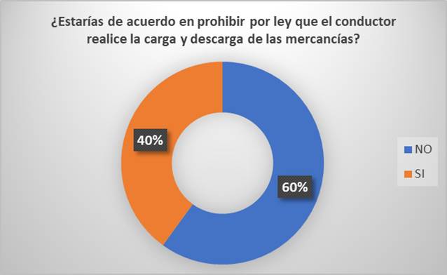 El 60 % de los encuestados está en contra de prohibir que la carga y descarga de las mercancías la realice el conductor.