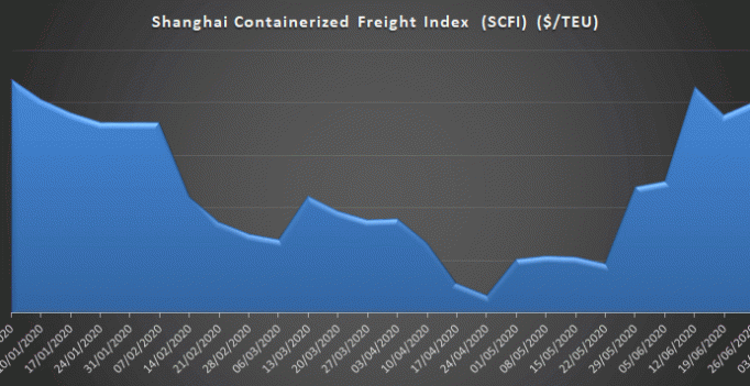 03/07/2020 AEUTRANSMER El SFCI ha experimentado esta semana una nueva subida, del 5,37%, situando el índice en 1.055,13 $/TEU, frente a los 1001,33 $/TEU del viernes anterior. Este incremento viene…