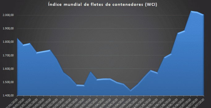 El coste medio del flete en las principales rutas mundiales ha subido un 45,8% respecto al mismo periodo de 2019