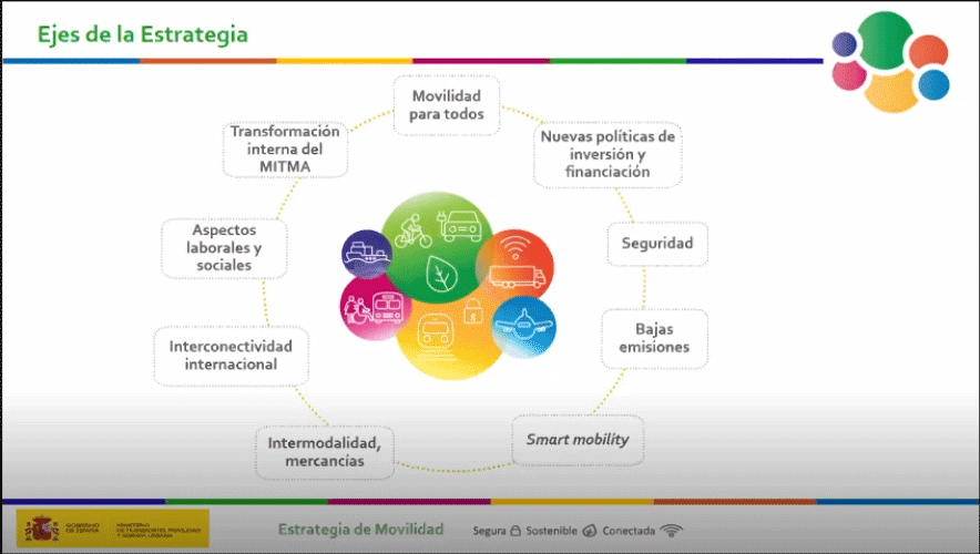 Presentó las características de la Estrategia de Movilidad Segura, Sostenible y Conectada del MITMA, que cuenta con 8 ejes centrales que desembocarán en 40 líneas de actuación y 150 medidas específicas con un plazo de ejecución a tres años.