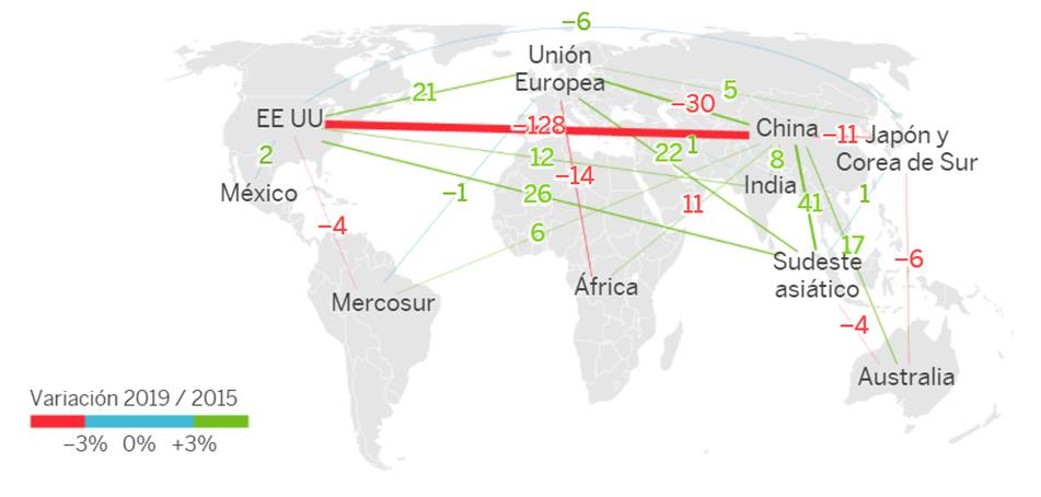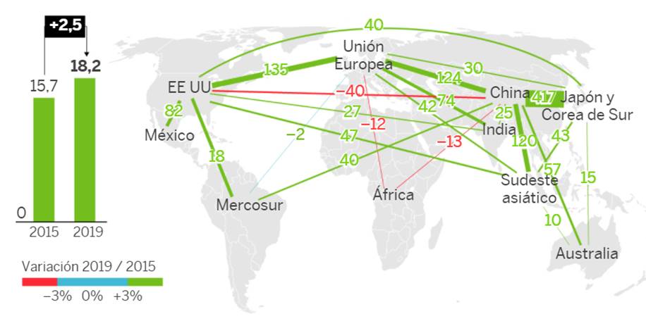 La previsión es que los flujos comerciales disminuyan de manera notable en el periodo 2019-2023