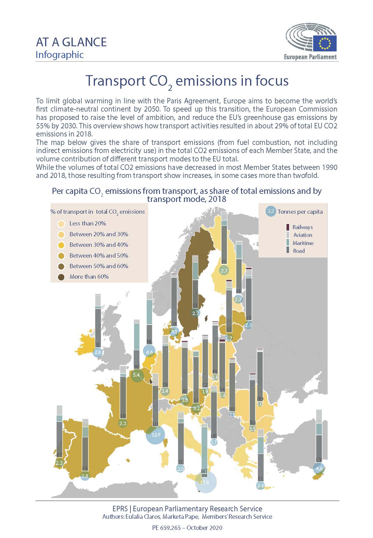 Si bien los volúmenes de emisiones totales de CO2 se han reducido en la mayoría de los Estados miembros entre 1990 y 2018, las derivadas del transporte muestran incrementos, que en algunos casos suponen más del doble.