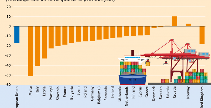El tráfico de los puertos de la UE cayó el 17% en el segundo trimestre del 2020
