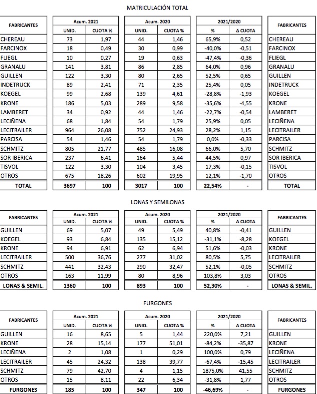 Las matriculaciones de semirremolques y remolques, se desbordan