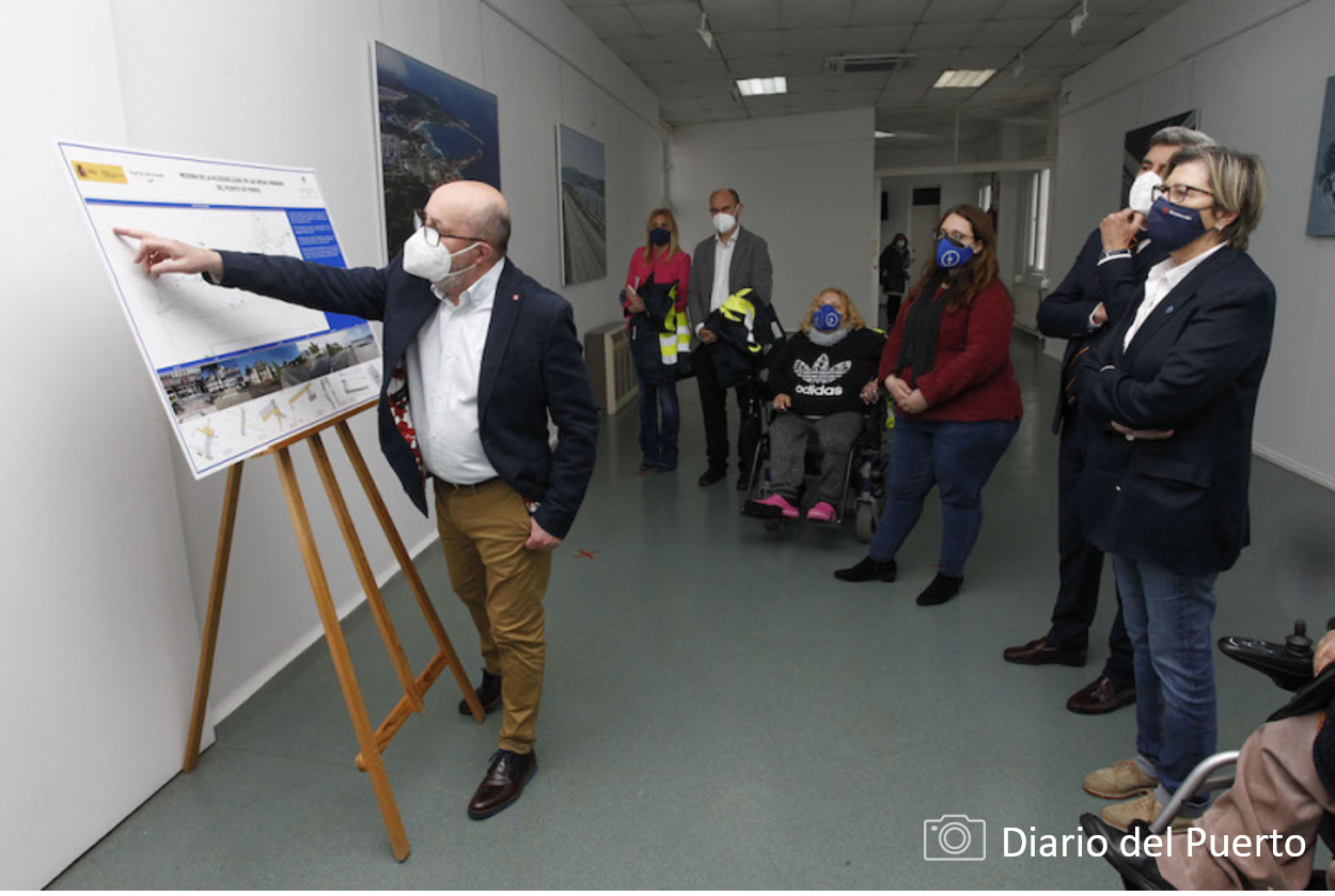 Rosa Quintana detalló que el proyecto de mejora de la accesibilidad en el Puerto de Ferrol prevé el acondicionamiento de 19 pasos de peatones, ocho plazas de aparcamiento para personas con movilidad reducida y otras cuatro actuaciones para seguir mejorando la movilidad en las aceras. A estas mejoras se suma un acceso a la Sala de Exposiciones para personas con diversidad funcional y otras acciones complementarias para dar servicio a los usuarios en el entorno portuario.