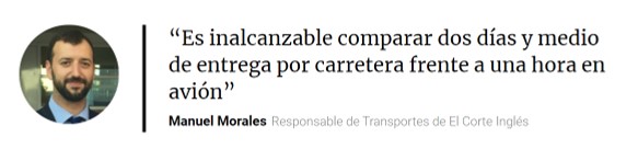 El transporte aéreo es el único que puede garantizar la inmediatez asociada al comercio electrónico o a bienes como los productores perecederos, los farmacéuticos o de alto valor añadido , a pesar de los altos precios de los vuelos de carga. Es la conclusión principal de la mesa redonda ‘Transporte por vía aérea, una oportunidad para el cargador’, organizada por la Asociación de Cargadores Españoles (ACE). “El ecommerce es inmediatez, y los cargadores debemos emplear este tipo de transporte para cumplir con los timings desde el año pasado. Si el cliente quiere algo, lo quiere ya”, ha manifestado el responsable de Transportes de El Corte Inglés, Manuel Morales. En ese sentido, augura un buen futuro para la carga aérea porque cree que es una necesidad al alza. “Se ha hablado de costes más altos, pero la demanda siempre va a estar ahí. Es inalcanzable comparar dos días y medio de tardanza de entrega de un producto por carretera o tren frente a una hora”.