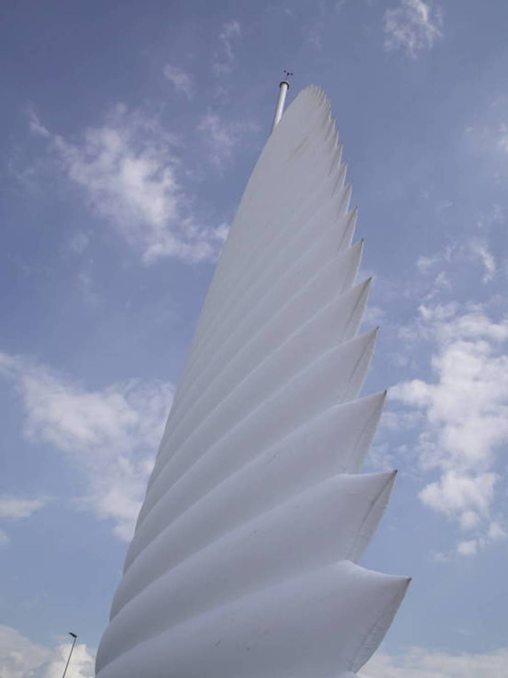 La vela tiene un pequeño compresor dentro que la hincha y un mástil telescópico en su interior que se despliega hasta que toma la forma deseada. Una vez hinchada, adquiere volumen y ofrece una superficie doble que según sus creadores recoge el viento de una manera más eficiente que una vela tradicional.