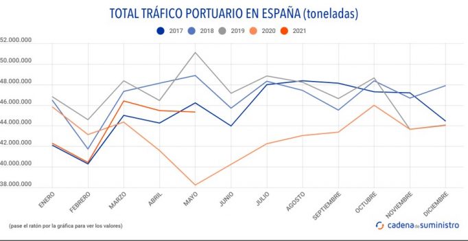 23/06/2021 CdS Los puertos españoles han movido en mayo un total de 45.344.757 toneladas, un 18,78% más que en el mismo mes de 2020. Más en detalle, durante el quinto mes…
