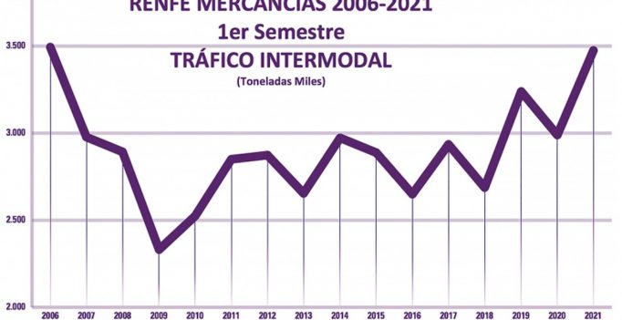 29/07/2021 DIARIO DEL PUERTO Renfe Mercancías sigue acelerando en su recuperación, con todos los tráficos en positivo en 2021 exceptuando el ancho métrico y con el intermodal como motor para…
