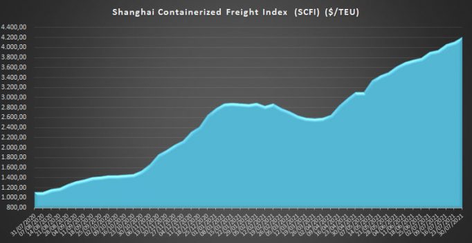 30/07/2021 ACE Los fletes desde Shanghái marcan hoy un aumento del 2,35% respecto a la semana anterior y un incremento del 280% respecto al mismo periodo de 2020, lo que…