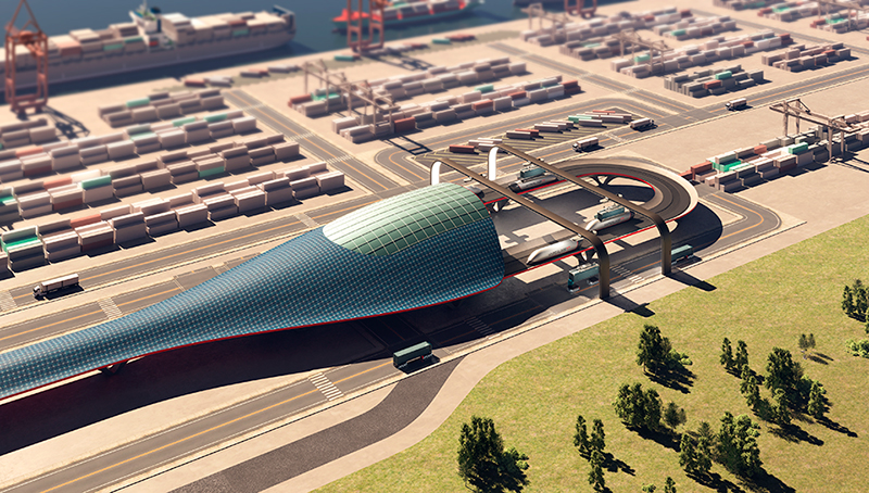 El sistema que utilizaría la misma tecnología de los sistemas para pasajeros, tubos de baja presión de Hyperloop, permitiría reducir el espacio que ocupan los contenedores en los puertos, aumentando la frecuencia del movimiento de los contenedores de los puertos a sus destinos, liberando espacio urbano y reduciendo la contaminación.