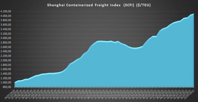 23/07/2021 ACE Los fletes desde Shanghái marcan hoy un aumento del 1,12% respecto a la semana anterior y un incremento del 301% respecto al mismo periodo de 2020, lo que…