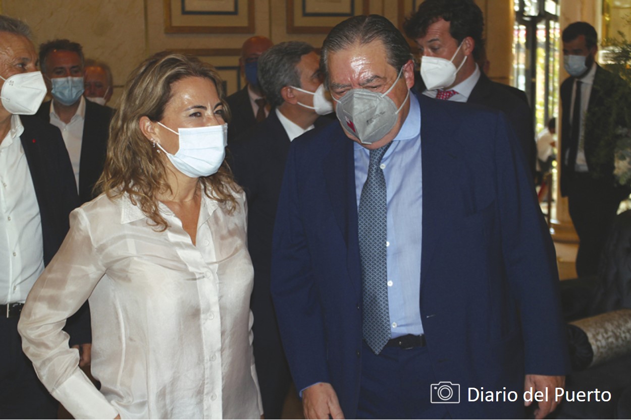 Raquel Sánchez, ministra de Transportes, junto al nuevo presidente de ANAVE, Vicente Boluda, el pasado 20 de julio durante la Asamblea de la patronal naviera. Foto M.J.