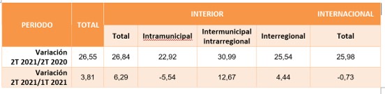 Respecto al mismo trimestre del año anterior, la actividad se ha incrementado más de un 20% para todas las rutas, de tal manera que la actividad doméstica creció un 26,84%, mientras que el tráfico internacional lo hizo un 25,98%.