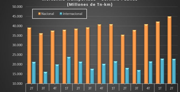 Según recoge la última encuesta permanente del transporte de mercancías por carretera que elabora el Ministerio de Fomento, en el segundo trimestre de 2021 el servicio público ha transportado un total de 67.579,29 millones de toneladas-kilómetro, un 26,55% más que el mismo periodo de 2020 (65.096,89 millones de toneladas-kilómetro).