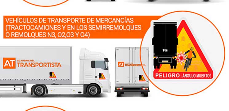 AT Academia del Transportista nos resume las principales características de esta nueva “señal de advertencia de peligro de ángulo muerto”: