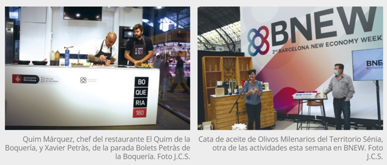 Una de las características de Barcelona es su gastronomía mediterránea, tanto tradicional como de vanguardia, y BNEW no podía dejar de incluir en su programa de actividades el showcooking protagonizado por Quim Márquez, chef del restaurante El Quim de la Boquería, junto con Xavier Petrás, de Bolets Petràs. Además, la Estación de Francia acogió ayer una cata de aceite de los Olivos Milenarios del Territorio Sénia.