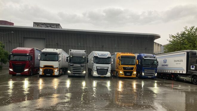 El proyecto Ensamble, cofinanciado por la UE y en el que participan DAF, Daimler, Iveco, MAN, Renault Trucks, Scania y Volvo, ha realizado con éxito en Barcelona una prueba de platooning. Siete camiones se unieron y por primera vez condujeron agrupados con esta nueva tecnología. La base del platooning es la conectividad V2V (vehículo a vehículo) que asegura el comportamiento correcto de cada uno de los camiones en el pelotón (platoon en inglés, de ahí el nombre de esta tecnología).