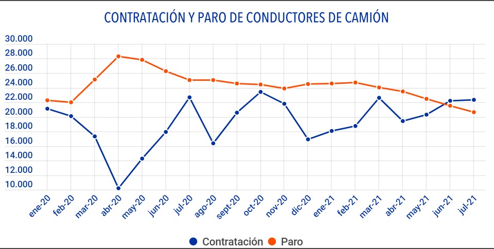 Pese a ello, la contratación de los conductores más experimentados queda por debajo de los nuevos contratos suscritos dentro del colectivo en el mes de julio.