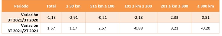 Este descenso viene marcado fundamentalmente por la bajada de precios en las distancias comprendidas entre 1 km y 201 km. Sin embargo, los precios suben un 2,33 % para recorridos comprendidos entre 201 km y 300 km y un 0,81 % para distancias superiores a 300 km.
