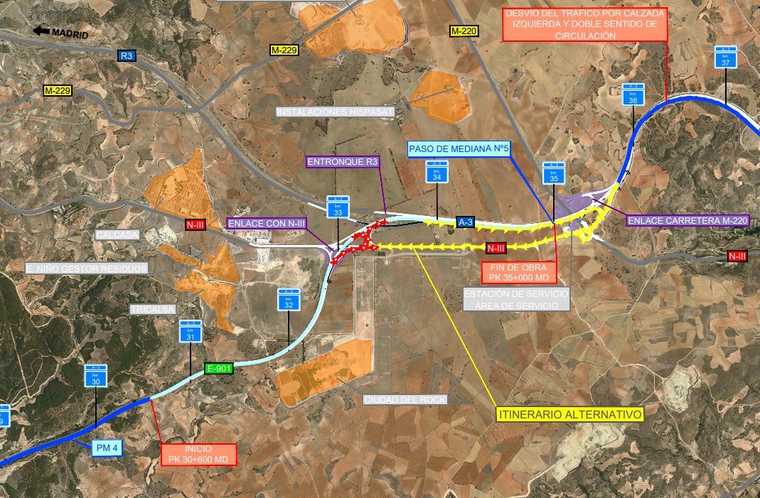 Estos trabajos se están realizando en varias fases consecutivas correspondientes con los distintos tramos de la autovía A-3 afectados por la rehabilitación.