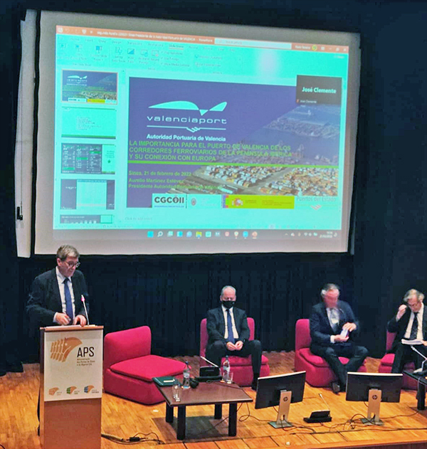 Martínez destacó en su intervención las inversiones que está afrontando el puerto de Valencia en materia ferroportuaria y que “están dando sus resultados”. En este sentido, “estamos destinando más de 84,6 millones de euros en acondicionar la línea Zaragoza-Teruel-Sagunto-Valencia, lo que ese está notando en el aumento de los tráficos en el corredor Cantábrico-Mediterráneo, con semanas que pueden alcanzar los 40 trenes de media”, aseguró.