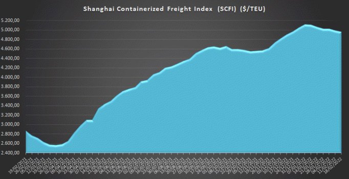 18/02/2022 ACE Con un valor de 4.946,01$/TEU, los fletes desde Shanghái marcan hoy un descenso del 1,3% respecto a la semana anterior, aunque mantienen un incremento del 72% en comparación…