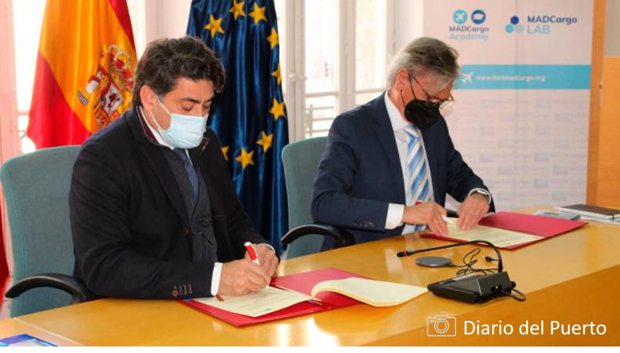El Consejero de Transportes e Infraestructuras de la Comunidad de Madrid, David Pérez, y el presidente de Foro MADCargo, Jesús Cuéllar, han firmado esta mañana el protocolo de colaboración para la promoción y desarrollo de la carga aérea en la Comunidad de Madrid.