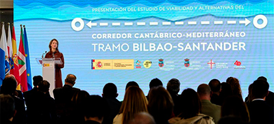 La ministra de Transportes, Movilidad y Agenda Urbana, Raquel Sánchez, presidió ayer en Santander el acto de presentación del estudio de viabilidad y alternativas para la nueva conexión ferroviaria entre la capital cántabra y Bilbao del Corredor Mediterráneo, para la que será necesario invertir entre 2.500 y 3.100 millones de euros.