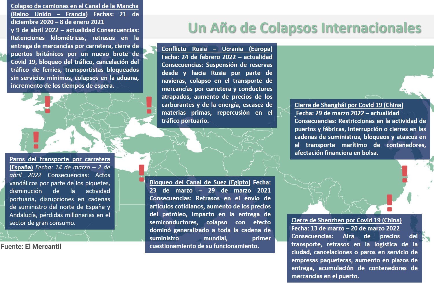 La pandemia cuestionó por primera vez la deslocalización de la cadena de producción y la dependencia de Asia. En marzo de 2021, el encallamiento del buque ‘Ever Given’ en el canal de Suez evidenciaba la fragilidad del sistema. El Brexit estuvo detrás de los colapsos en el puerto británico de Dover y el paso de Calais, dificultades que estos días han vuelto a producirse. Actualmente, la guerra en Ucrania, los recientes confinamientos de las ciudades chinas de Shenzhen y Shanghai por nuevos brotes de coronavirus, la escasez de microchips y semiconductores que ha puesto en jaque la fabricación y distribución automovilística, y en España, los paros del transporte por carretera y la llegada de Filomena son fenómenos impredecibles que impactan de lleno en la cadena de suministro y la economía mundial.