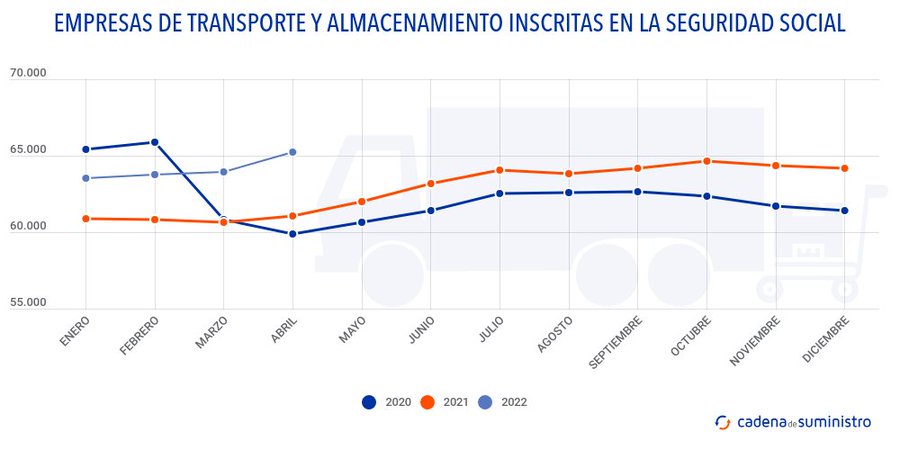 Durante el pasado mes de abril ha seguido creciendo el número de empresas de transporte y almacenamiento inscritas en la Seguridad Social.