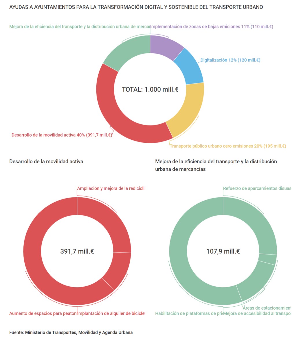 El ministerio de Transportes, Movilidad y Agenda Urbana (Mitma) ha dado el paso final para otorgar 1.000 millones de euros de los fondos europeos de recuperación a 171 municipios y dos entes supramunicipales para descarbonizar y digitalizar la movilidad urbana. Hoy se ha publicado en la sede electrónica del ministerio la resolución definitiva de la primera convocatoria en concurrencia competitiva de ayudas a ayuntamientos para la implantación de zonas de bajas emisiones (ZBE) y la transformación sostenible del transporte público, incluida en el plan de choque de movilidad sostenible, segura y conectada del Plan de Recuperación, Transformación y Resiliencia.