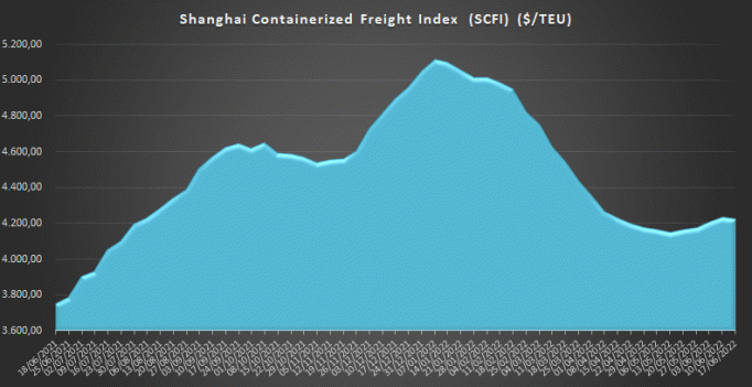 17/06/2022 ACE Con un valor de 4.221,96 $/TEU, los fletes desde Shanghái reflejan hoy un descenso del -0,3% respecto a la semana anterior, lo que pone fin a las subidas…