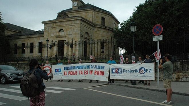 Además, transportistas de las organizaciones vascas Asotrava e HIRU se han manifestado a las puertas de la Casa de Juntas de Gernika, para expresar su rechazo. «Además de ser en una medida básicamente recaudatoria para cubrir el déficit general de las cuentas públicas, es discriminatoria al no ir dirigida a todos los usuarios de las vías», afirman estas asociaciones.